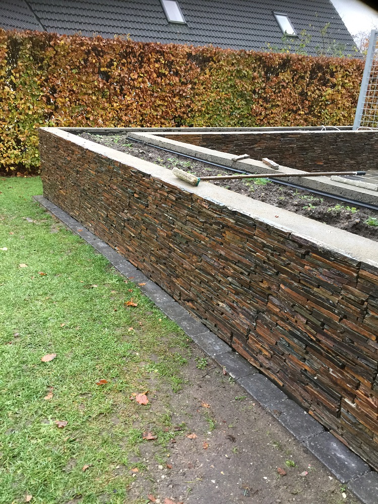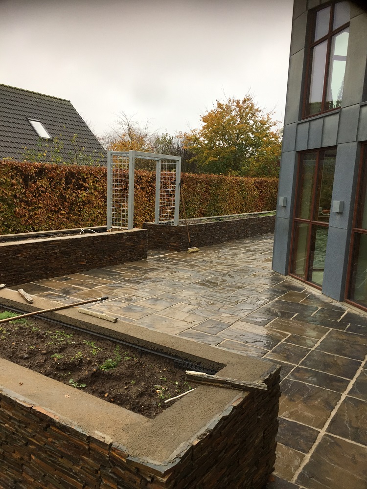 Eksklusiv belægning på både væg og flade arealer.belægning med fast fuge.udført af HJ Have & Anlæg ApS
